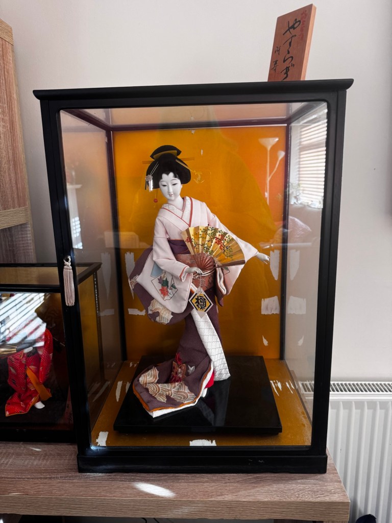 I started seeking out Japanese collectables, mostly on eBay. Looking for worn and dusty dolls, tourist souvenirs, interesting papers and photographs. Some things were directly linked to my memories, like navigation charts from some of the places we sailed to and from, some simply peeked my curiosity but the over riding factor was that they were all cheap. It makes it feel like the items are destined to come to me. I’d put in low bids and if I was outbid I accepted that this meant the object wasn’t for me. I’ve found some absolute bargains, like my Hakata doll and a beautiful large Bijin doll in a display case.