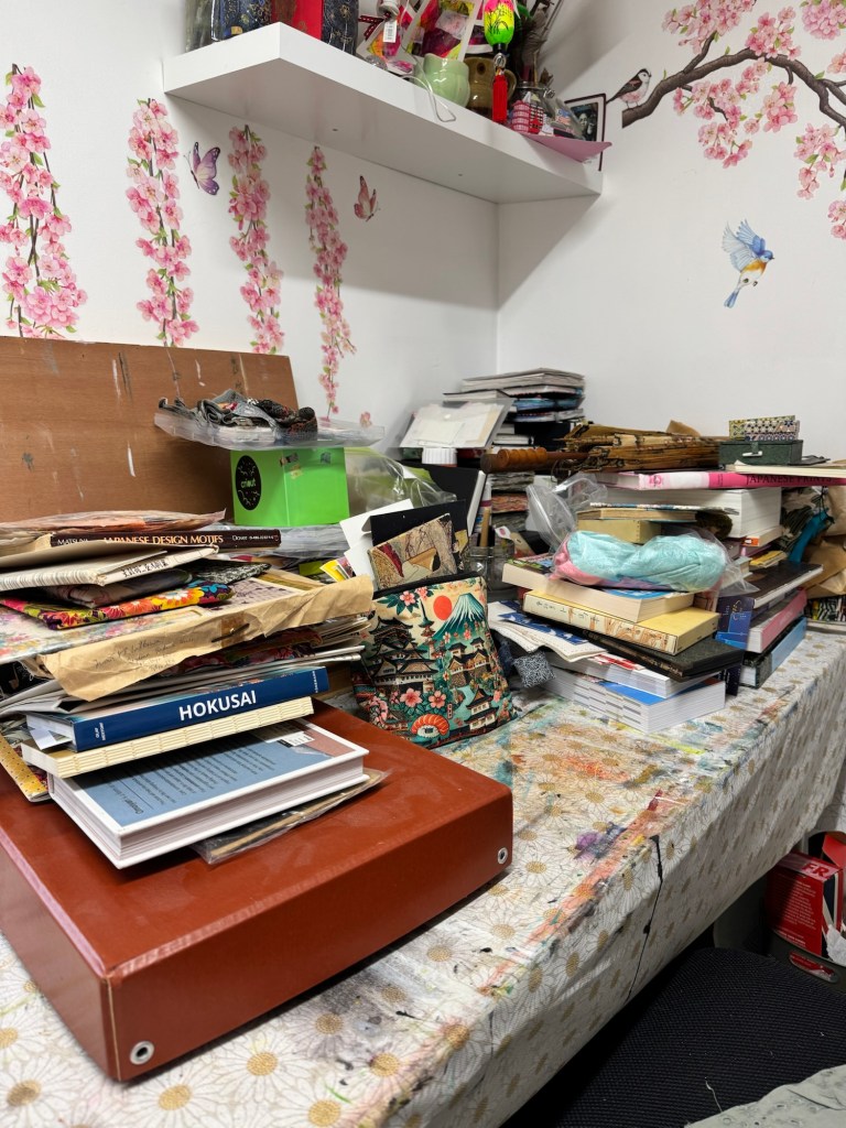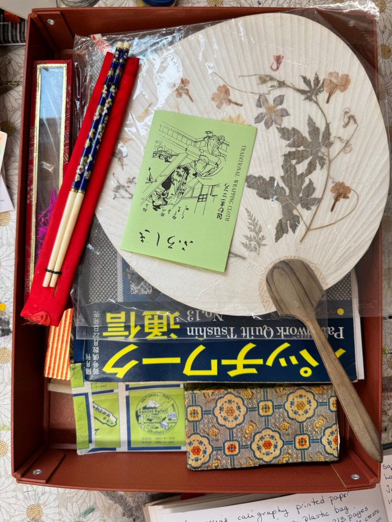 I’ve been seeking out and buying objects for over a year now and it’s building into a comprehensive Working Collection. There are souvenirs, fabrics, papers, collectables, household items — some decorative, some practical — alongside books and photographs from two voyages that included Japan.